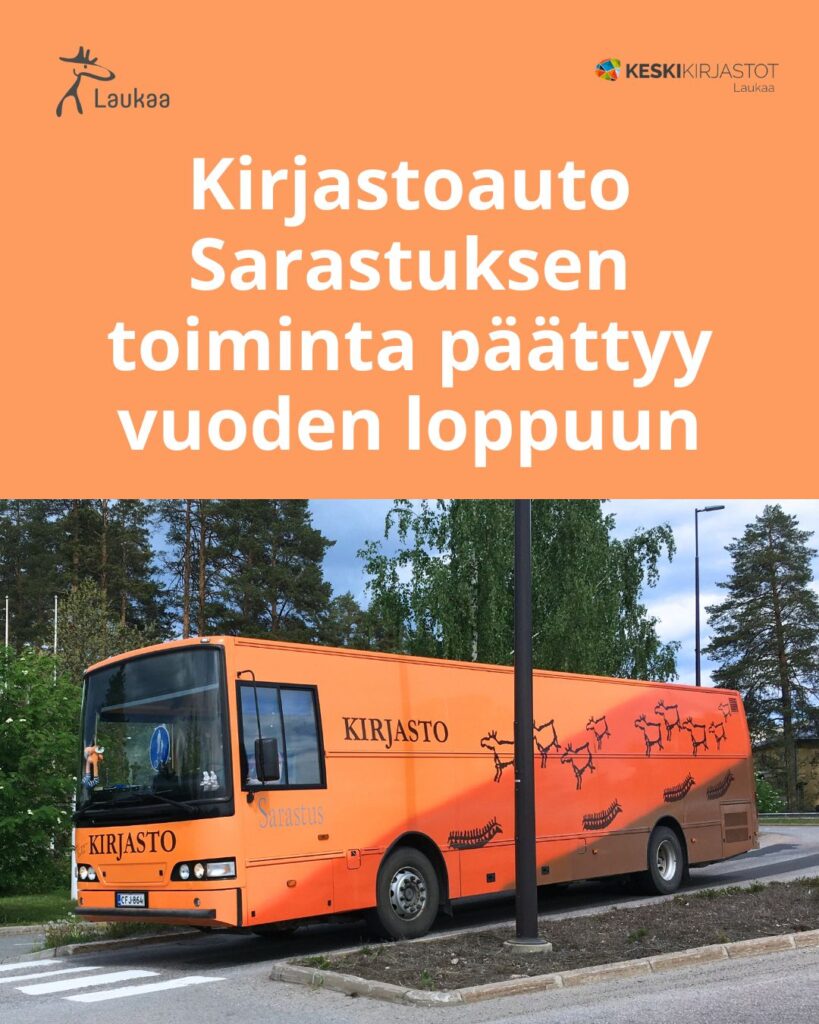 Laukaan kirjastoauto Sarastuksen toiminta päättyy tämän vuoden vuoden loppuun.