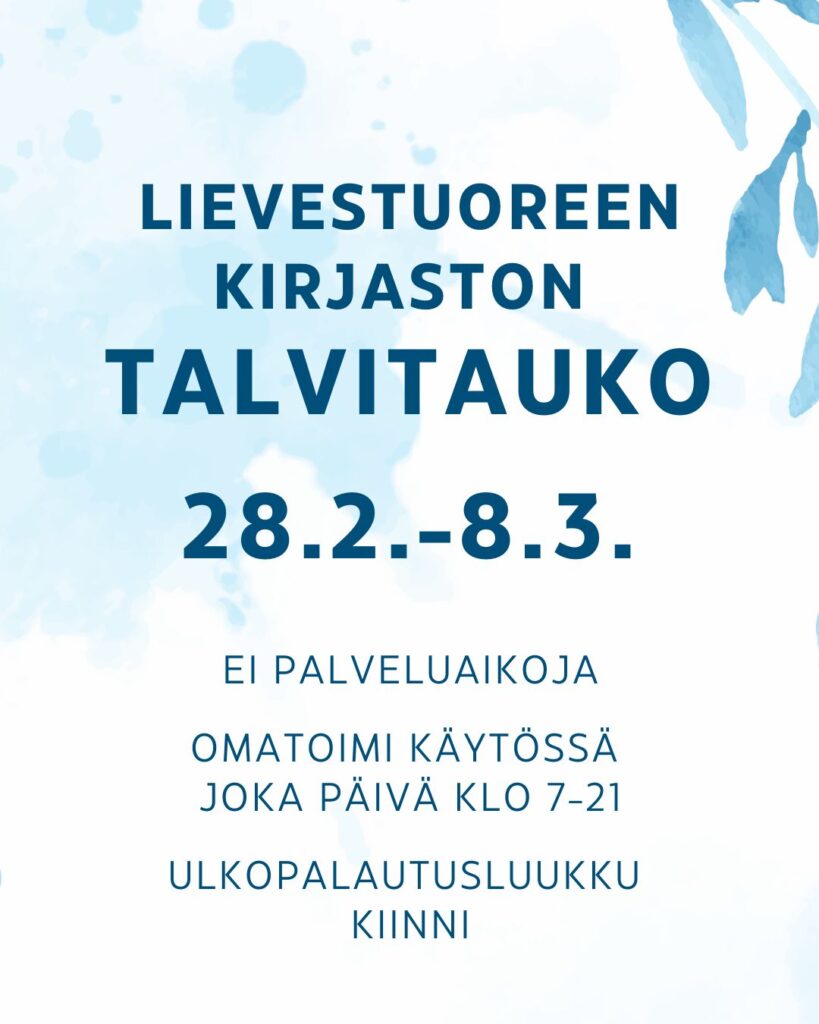 Lievestuoreen kirjastossa talvitauko 28.2.-8.3.