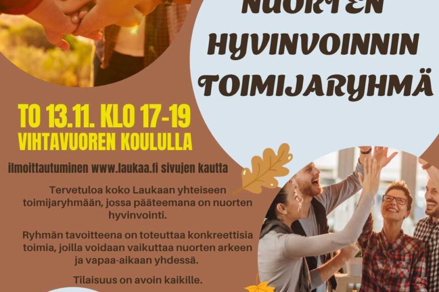 Tervetuloa koko Laukaan yhteiseen toimijaryhmään, jossa pääteemana on nuorten hyvinvointi!